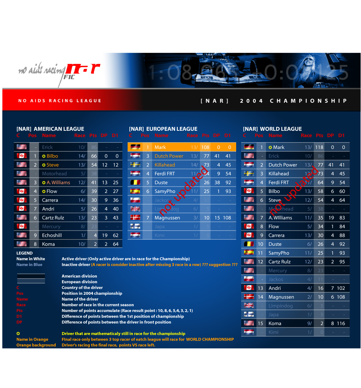 Her's the Unofficial standing for the american league. Il have to wait for the official result to update the European league race, since i dont know wow they finished.